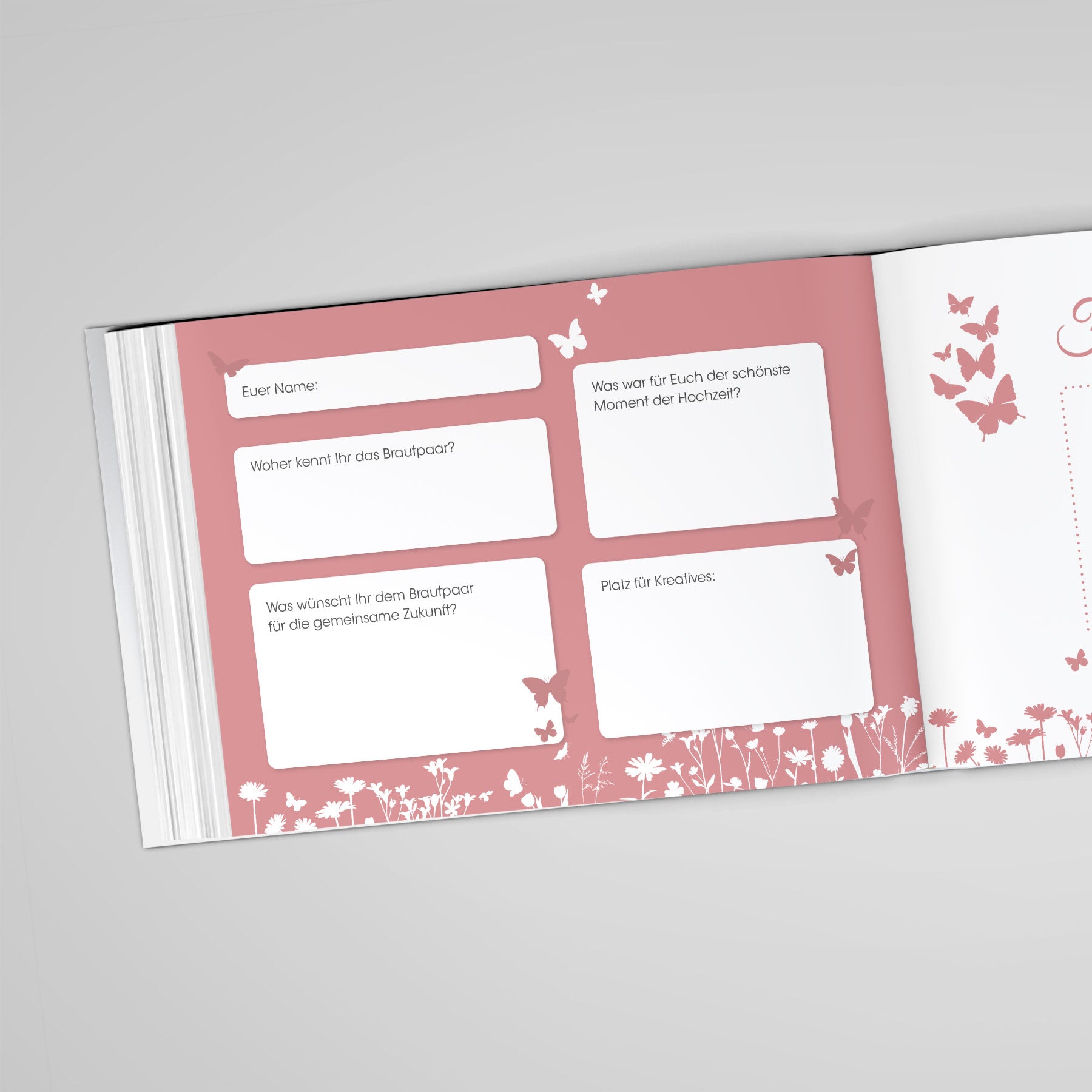 Beide Varianten verfügen über 104 Seiten (52 Blatt) und bieten damit ausreichend Platz für die meisten Hochzeitsgesellschaften.