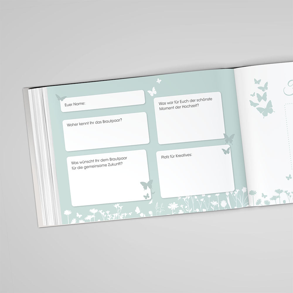 Beide Varianten verfügen über 104 Seiten (52 Blatt) und bieten damit ausreichend Platz für die meisten Hochzeitsgesellschaften.