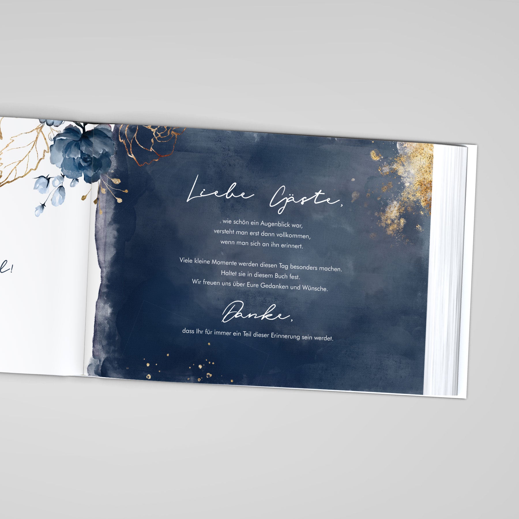 Entscheide dich für die individuelle Kreativität oder für inspirierende Vorgaben. Unsere Gästebücher sind in zwei Varianten erhältlich: Entweder blanko mit weißen Seiten zur freien Gestaltung oder mit vorgefertigten, liebevoll gestalteten Seiten (Einleitung+Fragen) zum Ausfüllen. Jedes Buch bietet genügend Raum für Fotos und persönliche Botschaften. Gefertigt aus hochwertigen Materialien und mit größter Sorgfalt produziert, sind unsere Bücher der perfekte Begleiter für jede Feier.